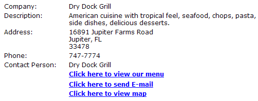 When a menu has been added to a business listing, it will display in the listing details when a visitor navigates through the directory to the restaurants listing. It would display similar to the below example: